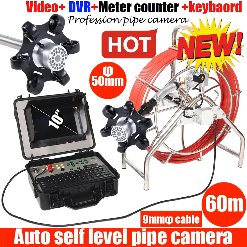 60m DVR Sewer Pipe Inspection Camera System Water Pipe Well camera System With 50mm camera